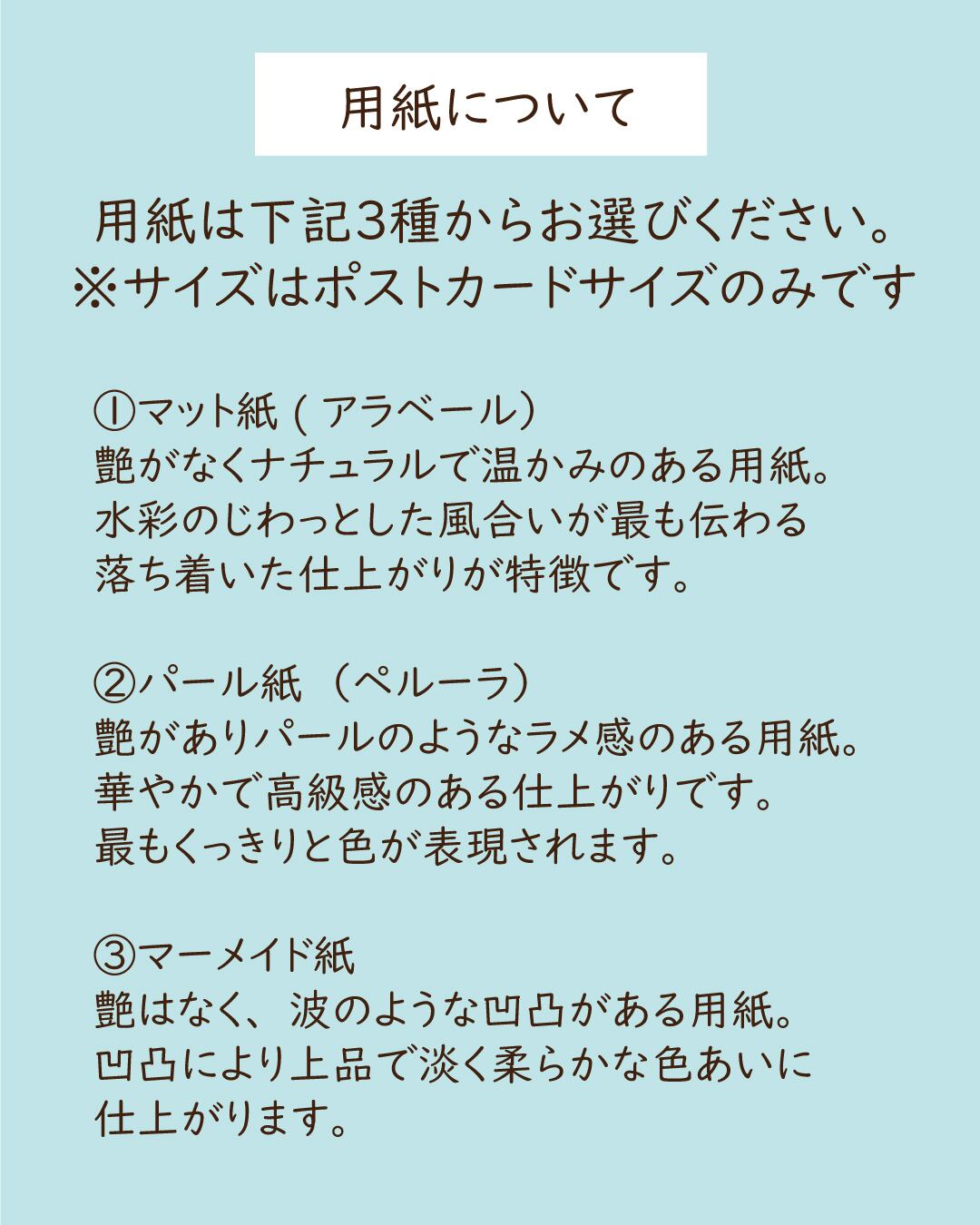 ・用紙:お選びください(①マット紙②パール紙③マーメイド紙)