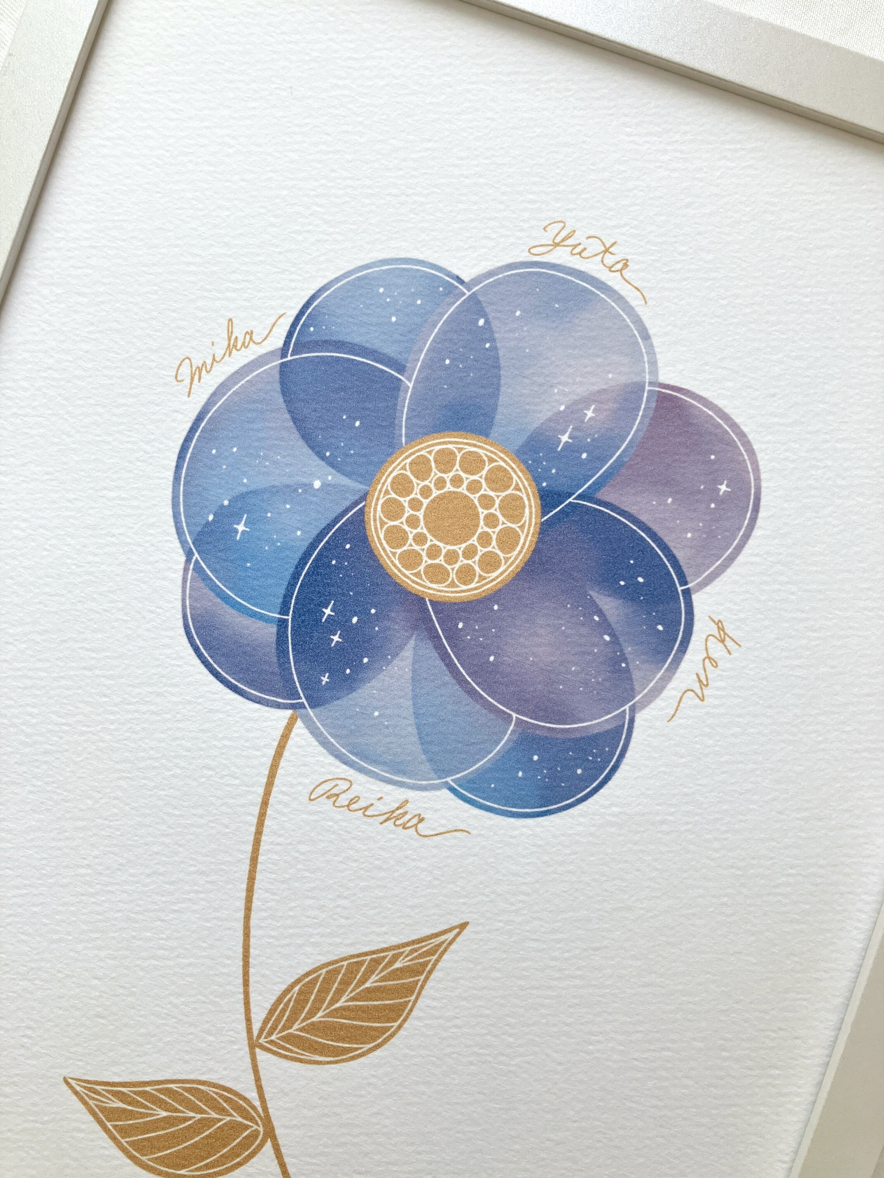 ステンドグラスみたいな青いお花のネームポスター|インテリアポスター|セミオーダー