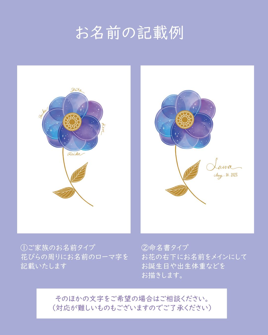 ・命名書タイプの場合:お名前のローマ字、お誕生日(生年月日)、その他体重、身長など
