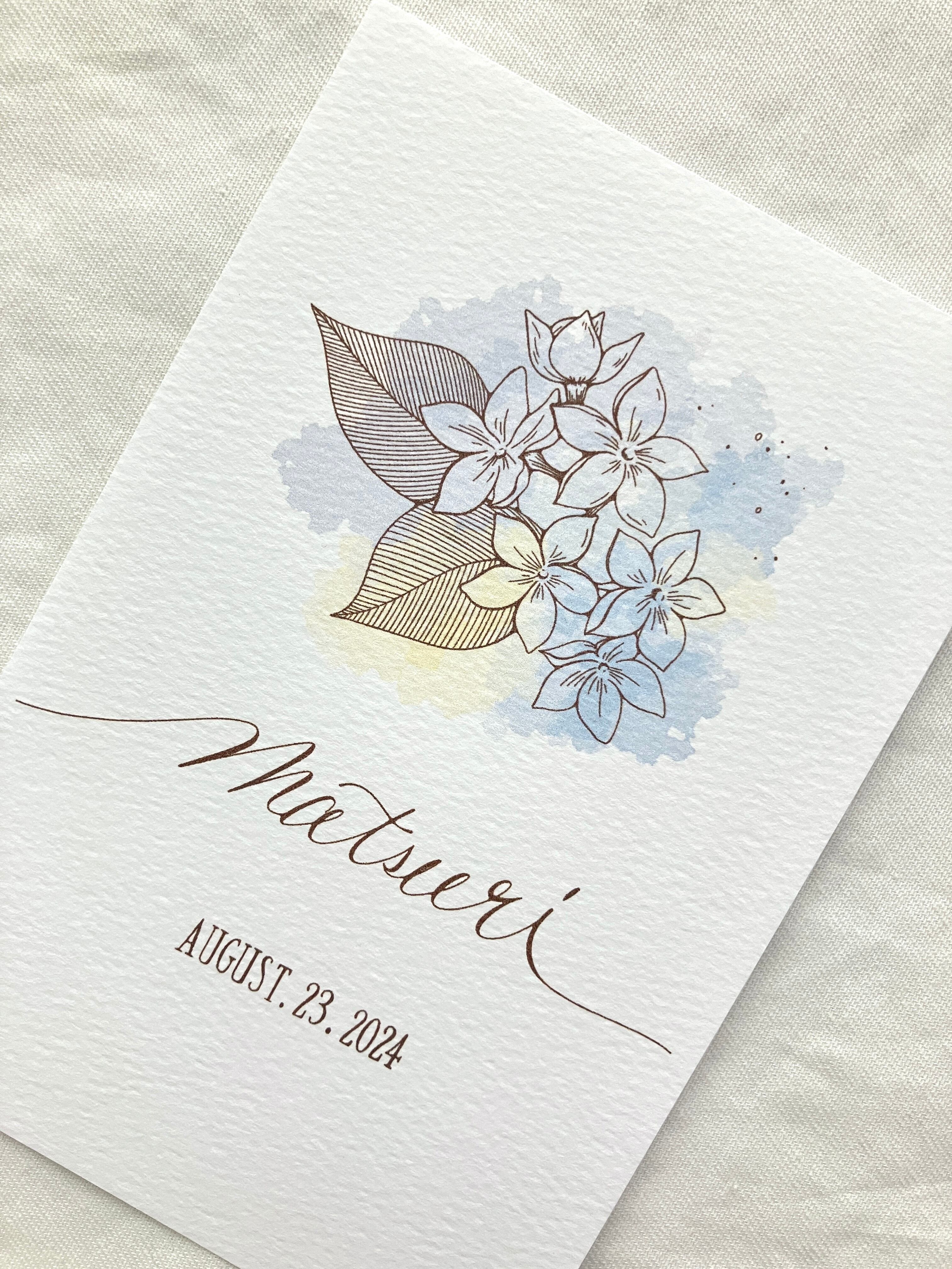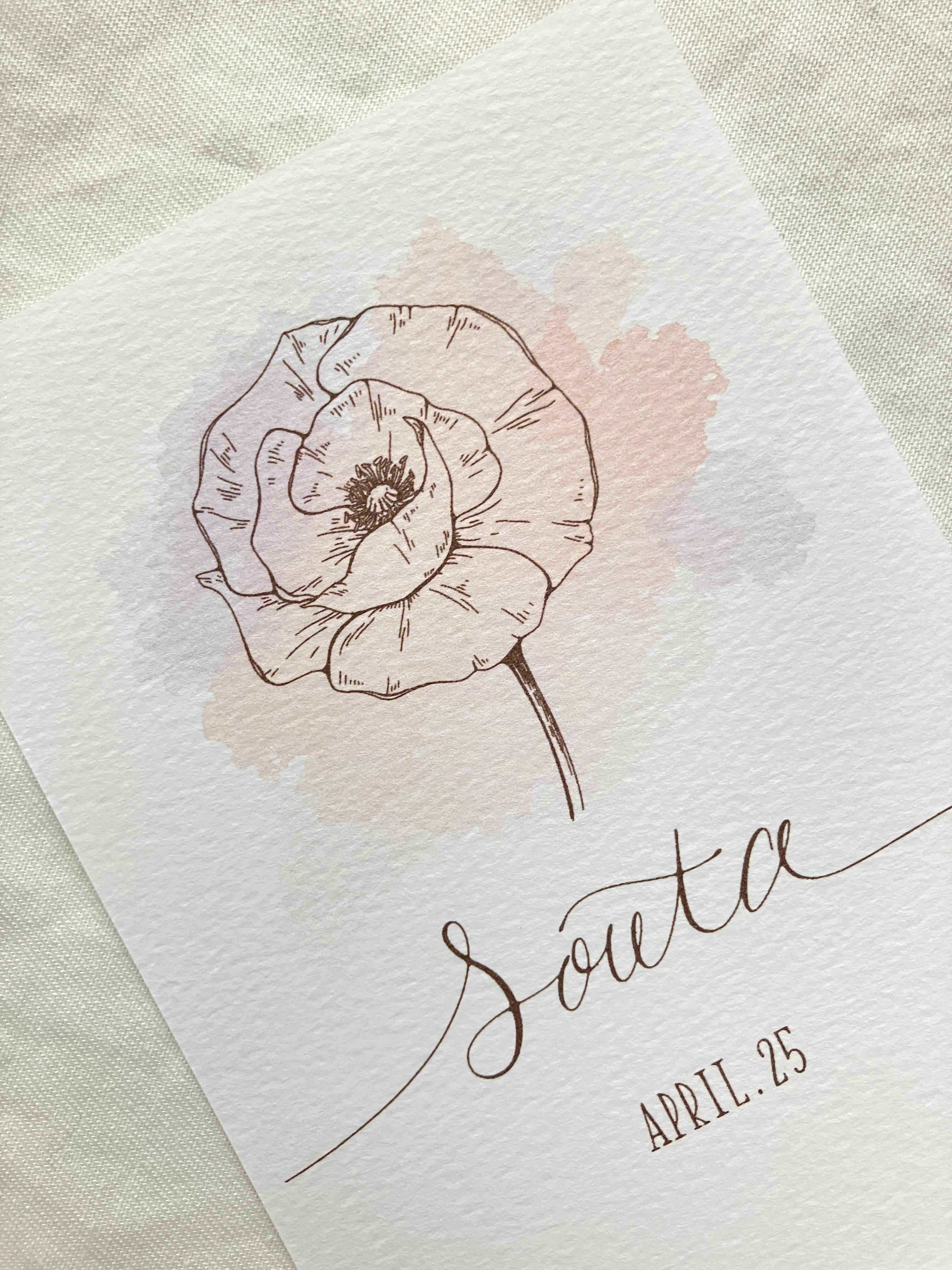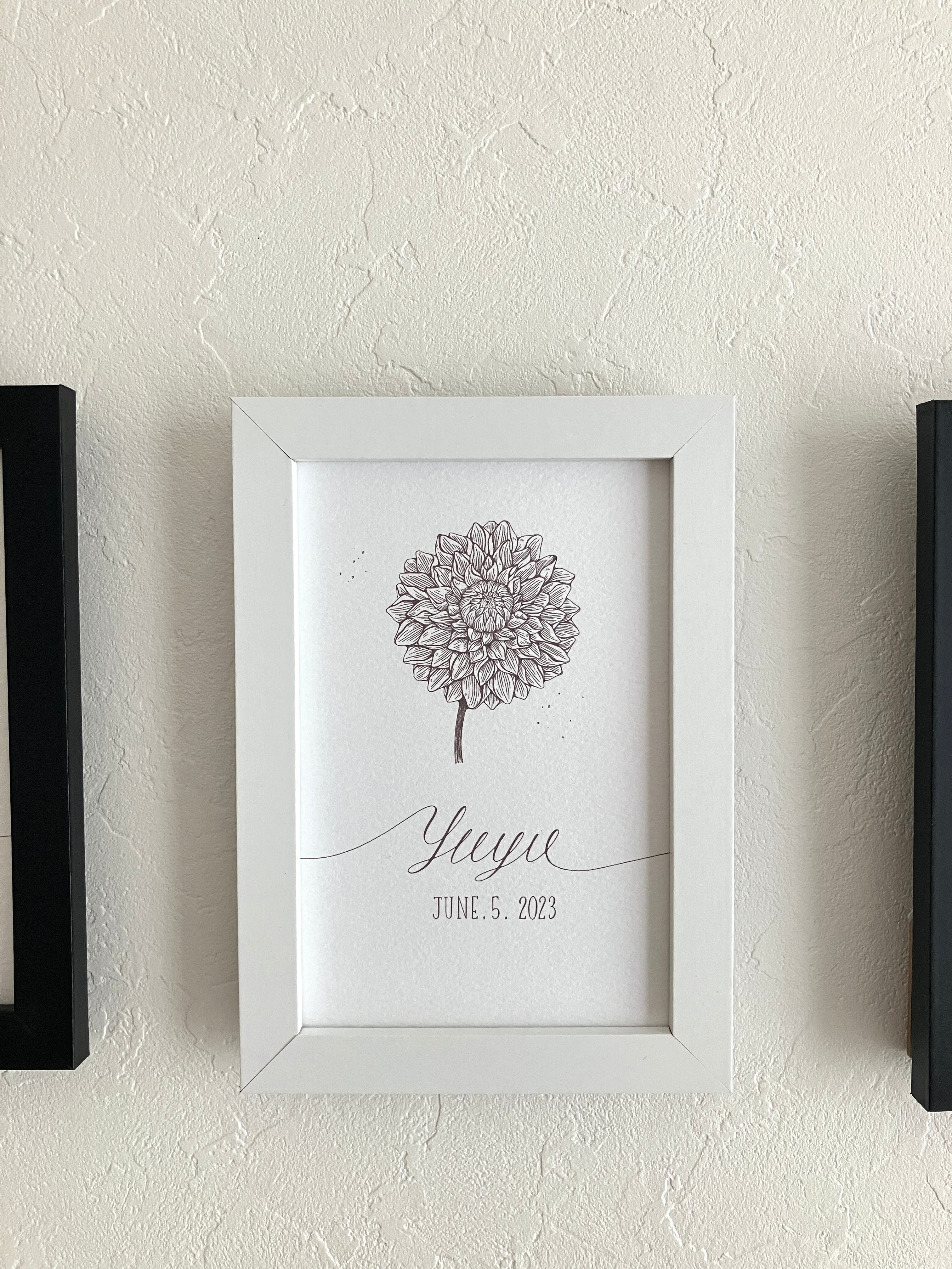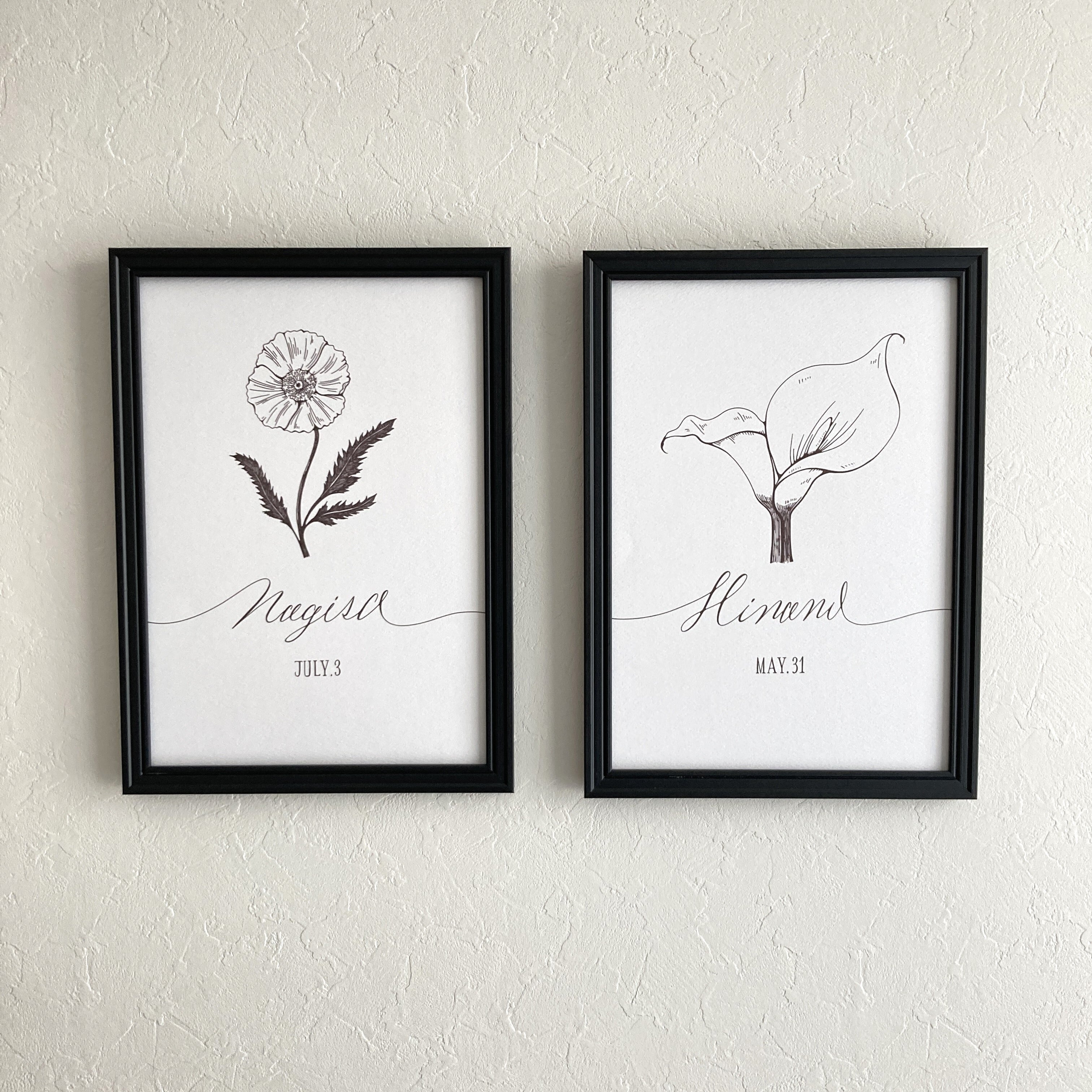 誕生花のイラストとカリグラフィ風のお名前を組み合わせた